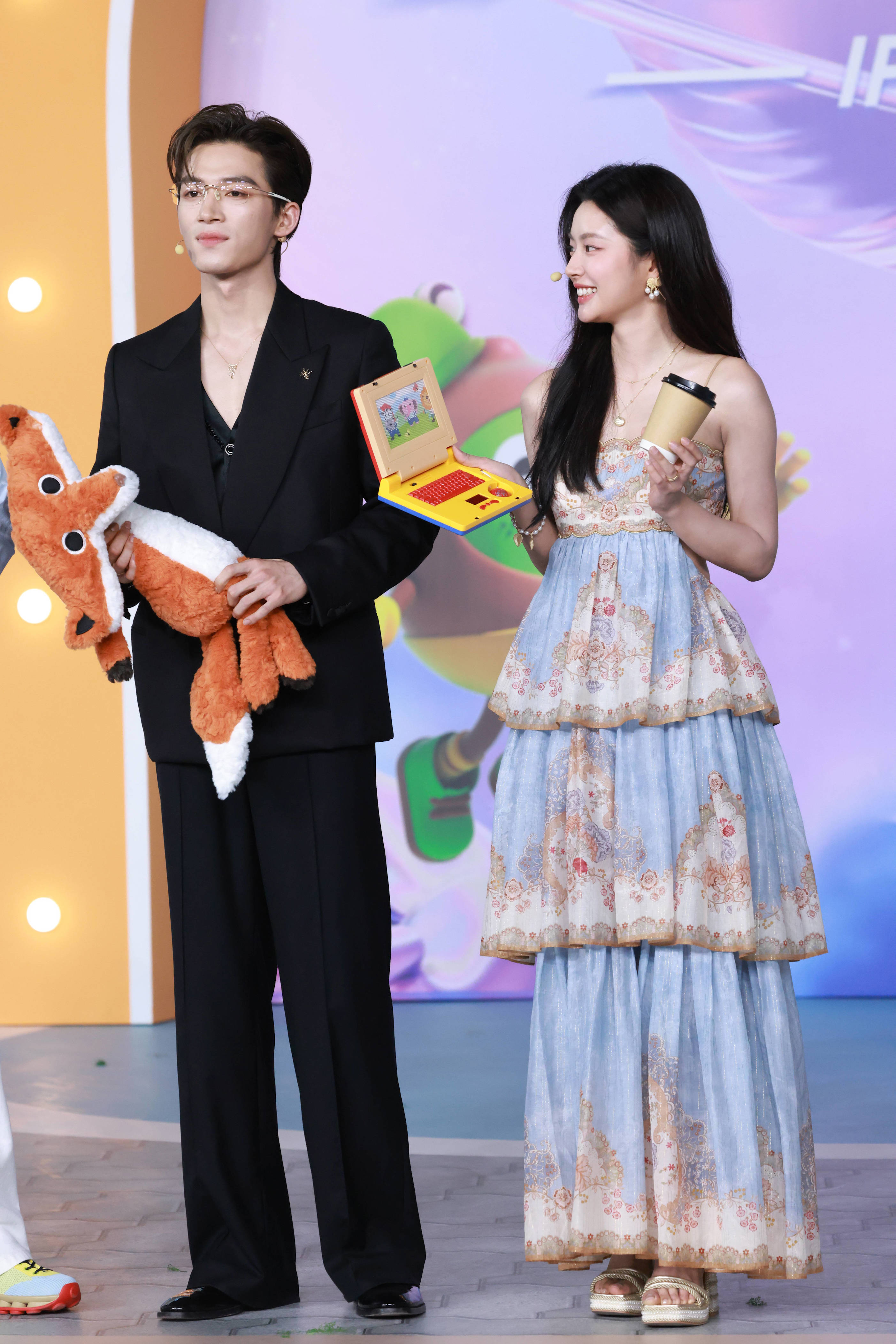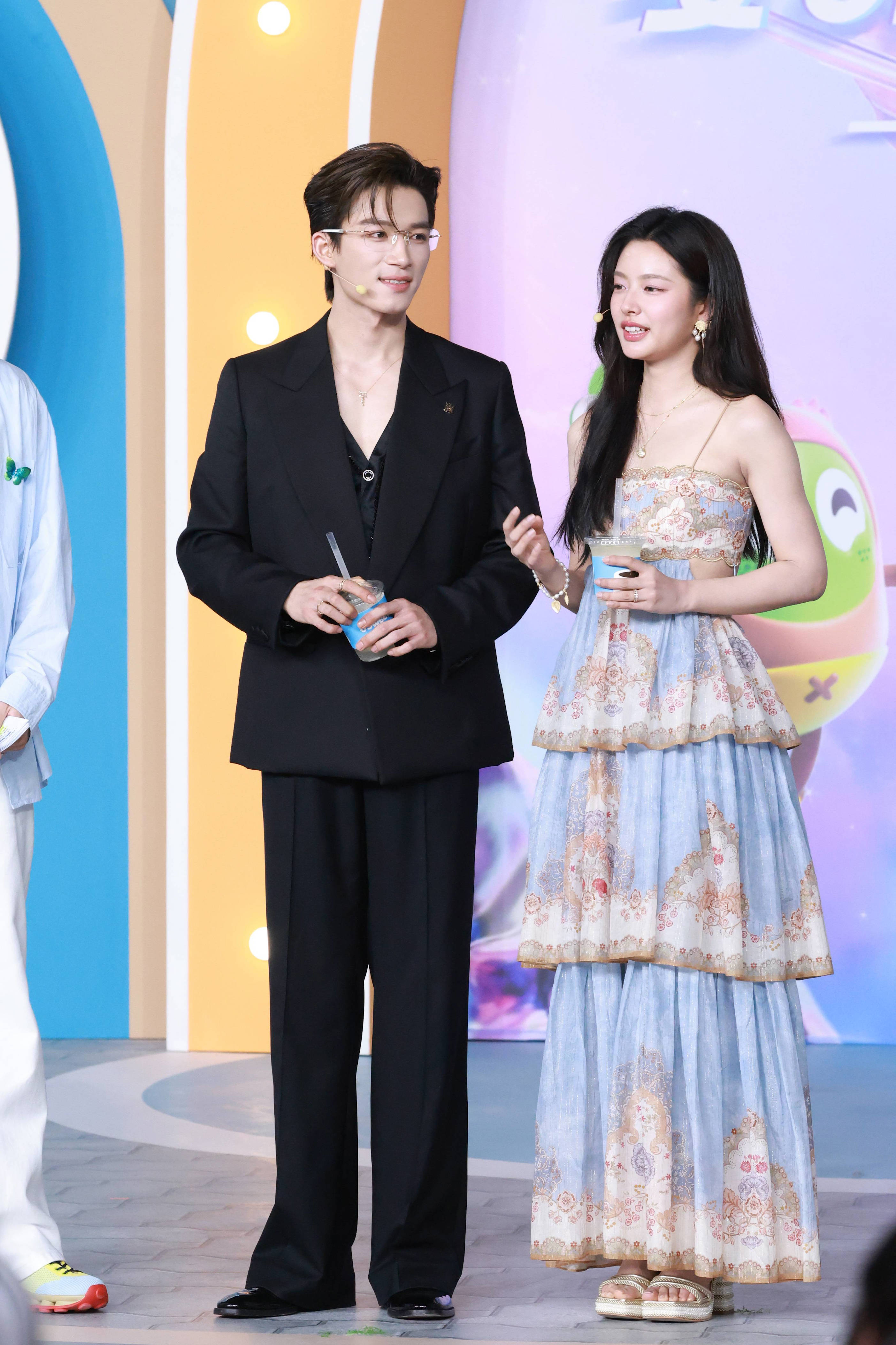 现场王星越、徐若晗合体宣传新剧《红尘四合》,王星越戴着眼镜,身穿黑色西装,又帅又酷;徐若晗则是一袭印花吊带裙,清新甜美,两人同框超有CP感。王星越透露,第一次见面觉得徐若晗特别i,不太爱说话,现在觉得她是“天选沐小树”,徐若晗则是爆料最初觉得王星越“凶凶的”,现在每天都跟他聊得很开心。活动上,他们还即兴挑战了舞蹈《大展鸿图》,现场很欢乐。