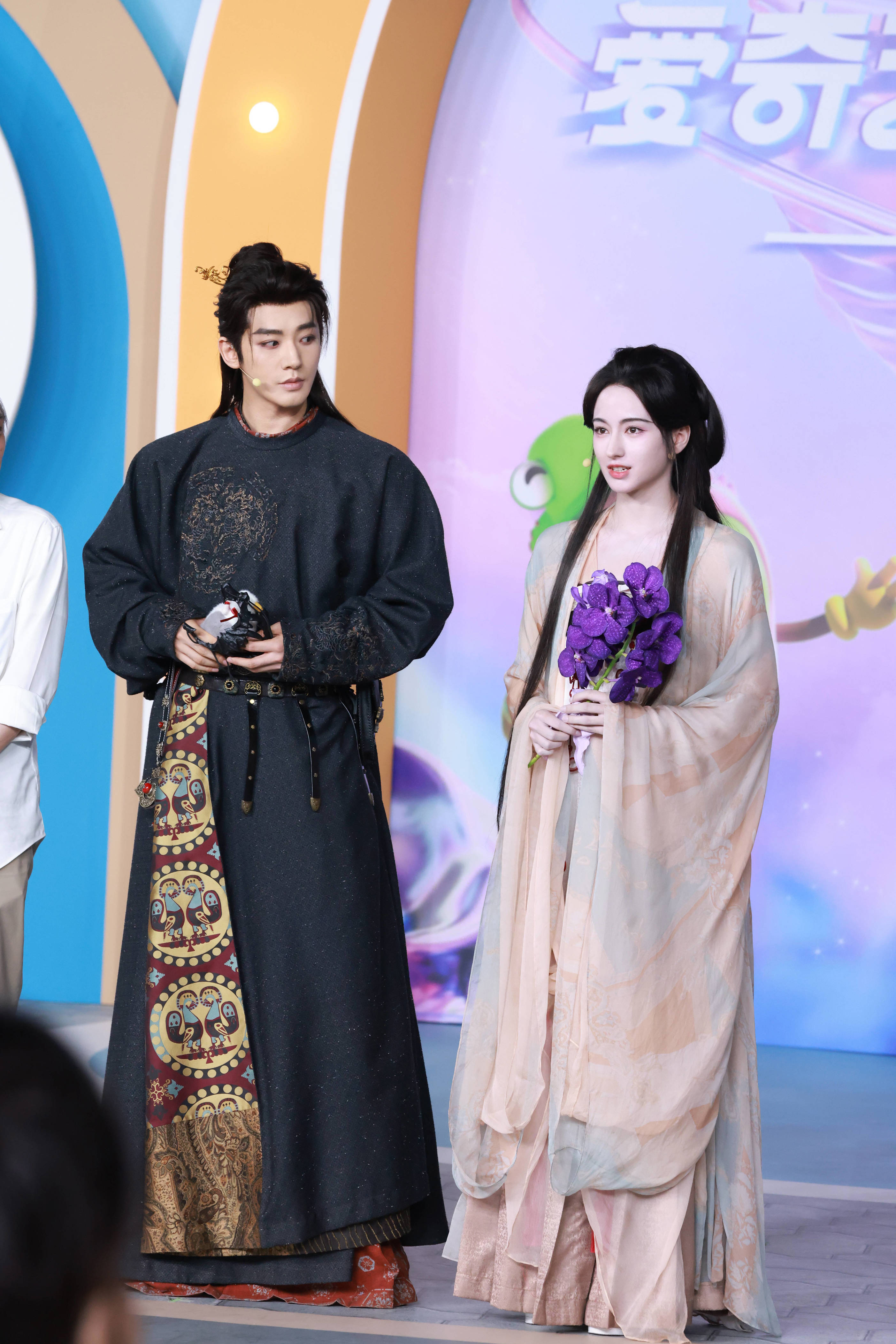 当晚,丞磊一连带来两部新作,分别是与王楚然合作的《成何体统》,以及和宋轶搭档的《与晋长安》。现场连线中,丞磊与王楚然上演“商业互吹”,王楚然夸搭档:“他是温柔、细腻、善良的男孩,很帅气,是一个幽默有趣的人。”在丞磊眼中,王楚然集合了美貌、善良、真挚、细腻的优点,“她很能够倾听、包容,是很真诚的人,我很荣幸跟她合作。”现场,王楚然向观众安利《成何体统》:“你想要的反转不断、甜虐交织都有!”丞磊与宋轶也分享了拍摄《与晋长安》的幕后,两人现场逗趣互动,宋轶还教丞磊蝴蝶结比心。